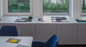 Diese Musterregale wurden speziell gemäß den Anforderungen unseres Kunden Goldbeck entworfen und gefertigt. Die indirekte Beleuchtung setzt jedes Element des Regals gekonnt in Szene und sorgt für eine einzigartige Atmosphäre. Foto: ©Paul Bosek