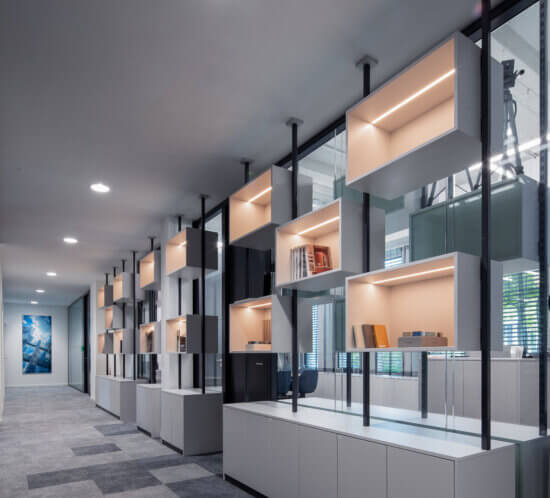 Diese Musterregale wurden speziell gemäß den Anforderungen unseres Kunden Goldbeck entworfen und gefertigt. Die indirekte Beleuchtung setzt jedes Element des Regals gekonnt in Szene und sorgt für eine einzigartige Atmosphäre.